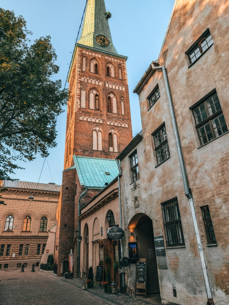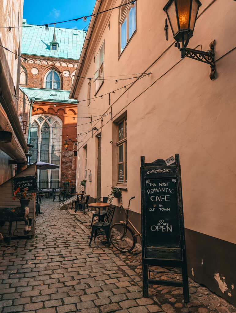 St. Jacob’s Catholic Cathedral in Riga is one of the oldest churches in the city, dating back to the 13th century. Known for its Gothic architecture and distinctive tower, it is a significant religious and historical landmark in Latvia’s capital. Around the corner from St. Jacob’s Cathedral, tucked away in a charming alley, is Parunāsim Kafe’teeka—according to them the most romantic café in Riga.