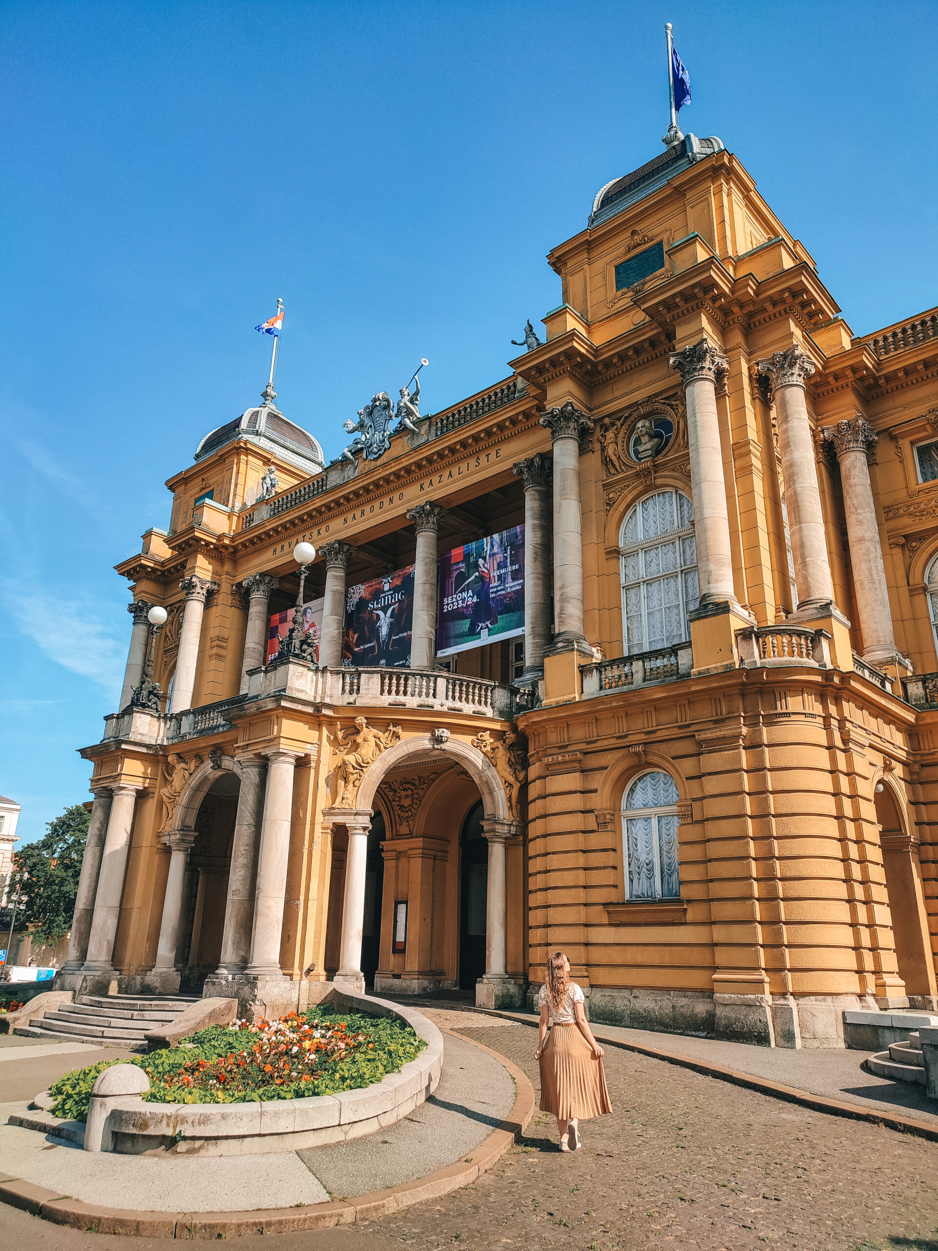 Start your morning with a visit to the iconic Croatian National Theatre in Zagreb. This stunning yellow Baroque-style building, constructed in 1895, is a masterpiece of architecture. Still in active use today, it hosts an impressive lineup of opera, ballet, and drama performances throughout the year. Take a walk around the theatre to admire its grand façade and intricate details. The surrounding park, adorned with vibrant flowers and greenery, provides the perfect backdrop for photos and a peaceful escape in the heart of the city.