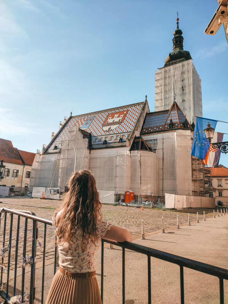 From the Stone Gate, take a short walk to the iconic St. Mark’s Church, one of Croatia’s most famous landmarks. This stunning church is easily recognized by its vividly tiled roof, which features the crests of Zagreb and Croatia, showcasing a piece of the country’s rich history and pride. Unfortunately the church was under construction during our trip but the roof was still visible.